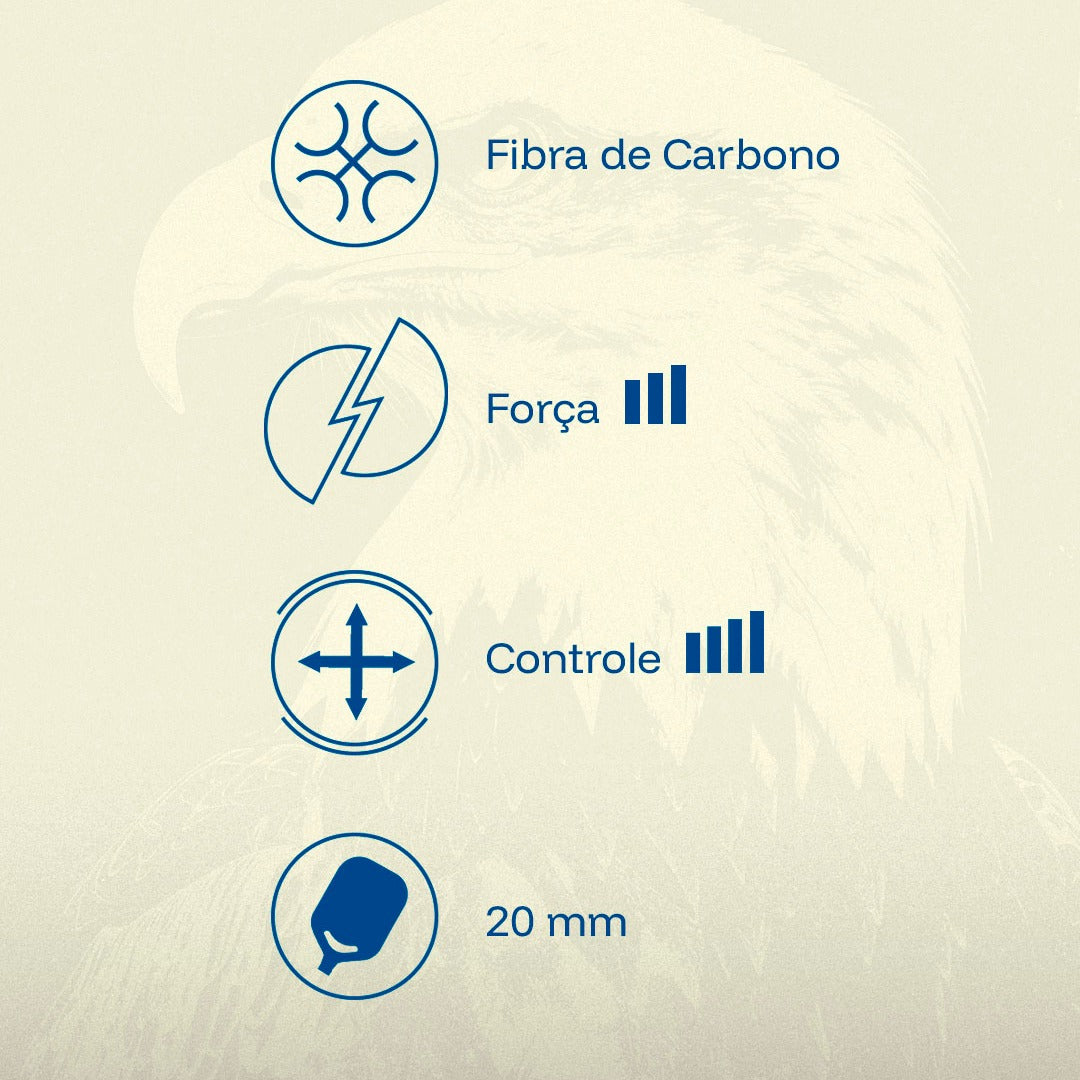 Carbon Fiber Pro: A Eagle Pro utiliza a exclusiva trama de carbono da MASASPORT, desenvolvida para entregar potência com máximo controle. Essa tecnologia amplia o sweet spot e garante precisão em cada batida.