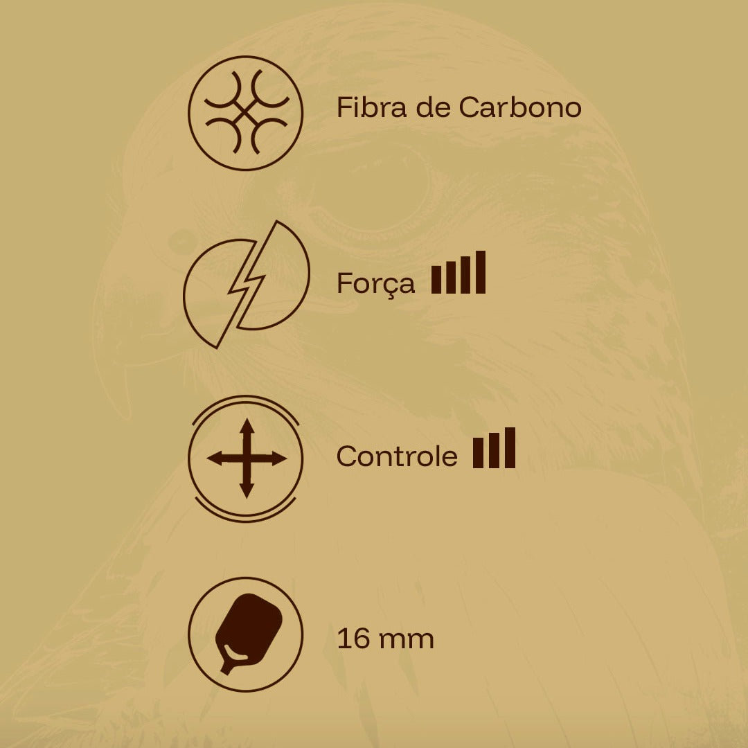 Enquanto muitas raquetes priorizam apenas potência, a Eagle Pro 16mm foi desenhada para quem deseja um jogo ágil, dinâmico e com total sensibilidade na bola.